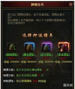 现在镖局人手严重短缺,有以下几种镖车需要押运,你可以帮我吗?萝卜玩《天神战》龙门镖局门口等你!