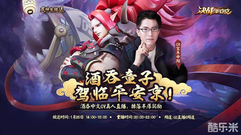 平安战场携手奋战,网易CC直播现世相约。酒吞童子即将上线的消息让不少阴阳师大人都兴奋不已,1月25日14:00-16:00,《决战!平安京》将邀请酒吞童子中文CV——宝木中阳做客平安京,为大人们带来丰富惊喜!