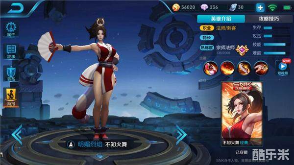 不知火舞是一名远程消耗能力不俗的法师英雄,自身的输出能力较强,可以在战斗中对敌人造成致命的威胁,拥有位移技能的不知火舞在一定程度上可以实现自保,相对于其他法师,不知火舞拥有更多的输出机会。团战时的不知火舞要选择相对安全的位置进行输出,不断利用二技能消耗敌人的血量,一旦敌人切入后排,不知火舞就要迅速释放连招对敌人打出控制效果。
