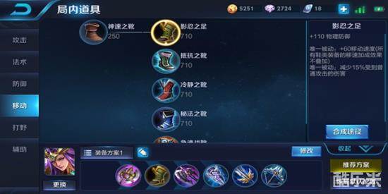 影忍之足:一技能和大招的免疫控制效果使得雅典娜没有必要出抵抗之靴,并且影忍之足可以抵免敌军普攻的伤害。