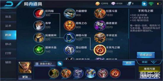 第六件出装推荐不死鸟之眼。这一装备会增加英雄本身240法术防御,1200最大生命值。这让亚瑟的扛伤能力更强,被动血统的回复效果加成让亚瑟被动技能回复的血量更多,极大的增强了亚瑟的生存能力,能够更好的保护自己及输出。