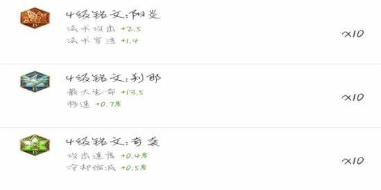 【铭文搭配】 前期以四级铭文过渡,后期用配套五级符文效果更好