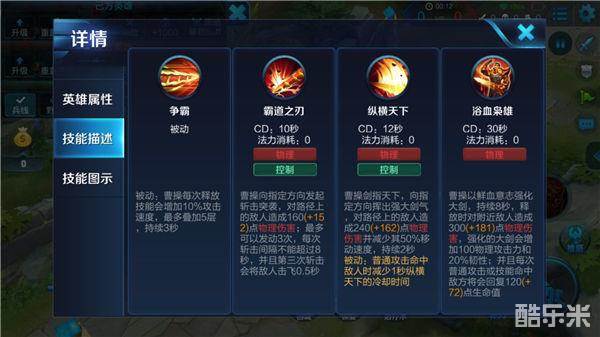 被动-争霸:曹操每次释放技能后都会增加攻速(可叠加,但有上限)。