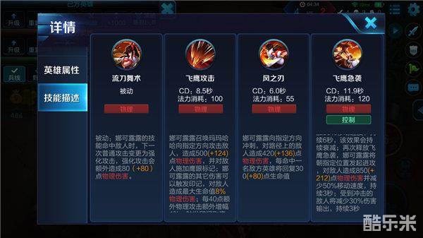 解析:娜可露露召唤飞鹰并肩作战,短时间内大幅提高自身的移速(会持续衰减),再次释放该技能娜可露露会砸向指定区域,对范围内的敌人造成物理伤害、减速和虚弱效果。