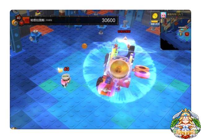 清理掉守门的机器人之后,进入玩具城钟楼,发现自己出现在房廊上,BOSS就在自己脚下。跳下去就能直接战斗了。