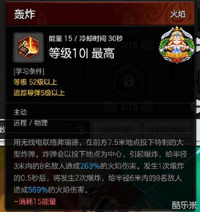 轰炸:在角色正前方7.5米处(较远距离)扔下导弹,造成2段高额大范围火焰伤害。