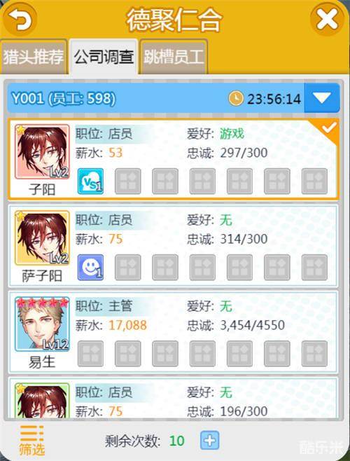 英明的将军带着勇敢的士兵才能打胜仗。第一步就得挑选勤劳能干的员工,忠诚度,能力值,薪资,各方面都要综合考虑喔!