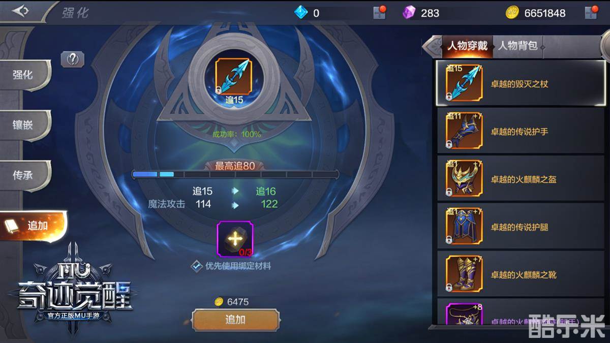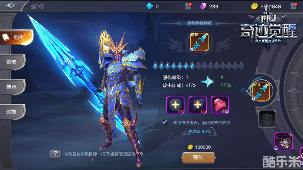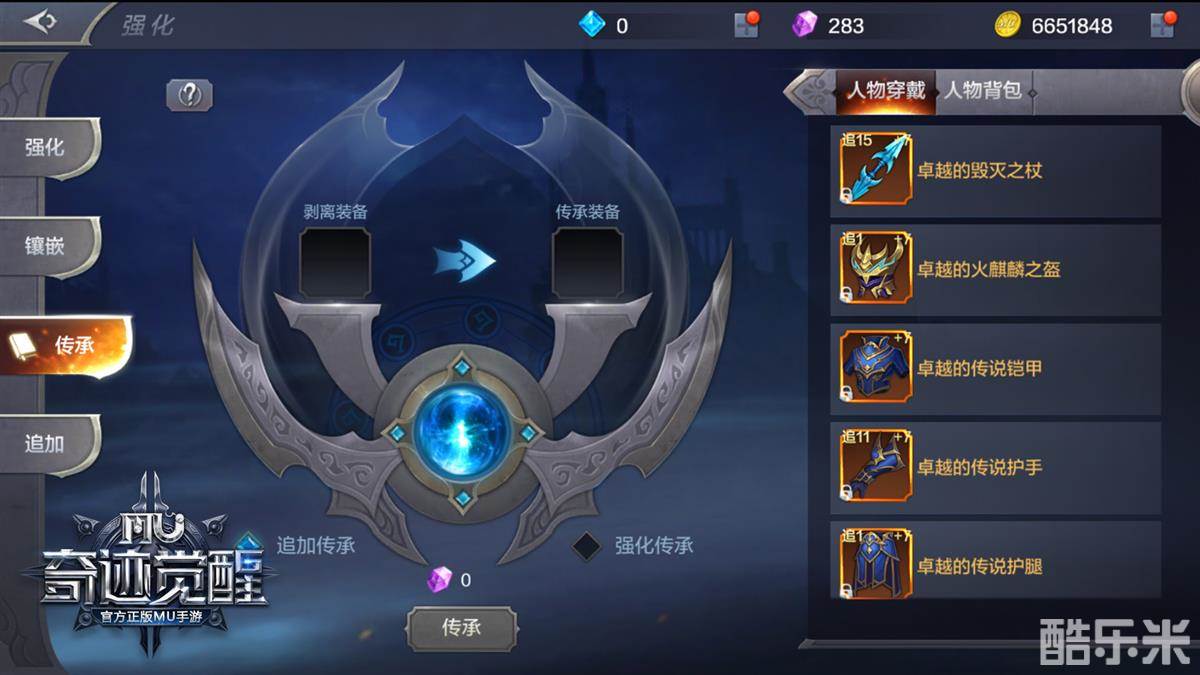 在装备培养上,《奇迹MU:觉醒》为玩家提供了多种玩法,包括强化、镶嵌、传承、追加。