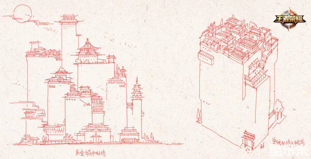 借鉴历史上的长安城设定,美术大大在王者的世界里创造了这座全新的幻想都市。