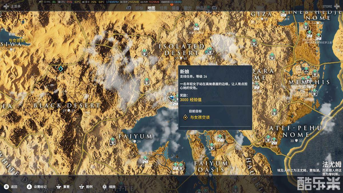 本文为大家带来刺客信条起源新娘任务触发地图解,这个任务在地图上没有标注,想完成全任务(127个)的玩家不好找,希望本文对大家有所帮助: