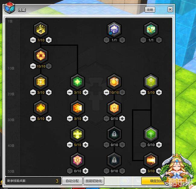 (由于我等级53级,技能点较多,所以我扣掉了几个技能点,把技能等级压在了50级时候可学习的技能。)