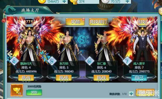 不管是仙界还是魔界,拥有强悍的实力,才是生存的根本,而战场大厅则是用来决出谁才是仙侠世界的天下第一人。相比领地战与轩辕城战争霸,战场大厅才是展现自己实力的最佳场所,称霸整个九幽仙域。