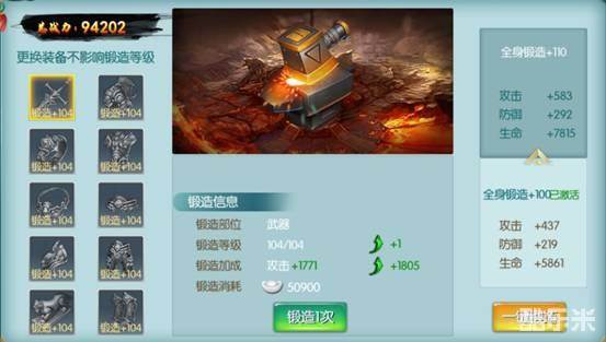 用道具提升装备属性,提升战力,消耗银两,提升装备精炼属性。每升一级所需银两将会翻倍增加。锻造级数不能超过人物自身等级。