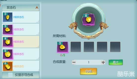 宝石镶嵌装备,提升战力,每件装备有三个宝石孔,对应三种类型的宝石,每个孔可镶嵌一颗宝石;随装备强化等级开放宝石孔;宝石镶嵌后可获得属性加成;宝石套装到一定条件有额外属性加成