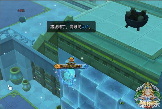 该副本因为是冰雪地图所以偏冷系风格,副本主要路线是攻击火炉融化冰块追踪少女卡娜,所以路上的小怪们是可以不用清掉的,当每来到门前都有冰块障碍物阻挡岛民们,这时我们需要寻找到附近被冰冻的火炉,让火炉融化掉冰块就能继续前进。