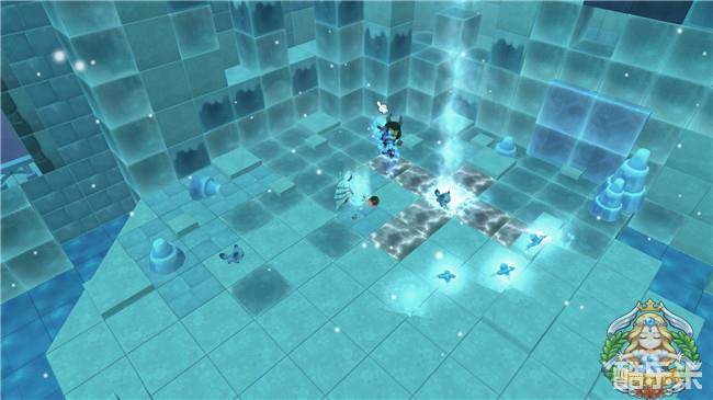 依次将神殿周围的冰块融化,追踪卡娜到达神殿底部,迎来BOSS战。卡娜分别释放三种技能,第一种是召唤暴风雪砸向地板,被砸中的岛民们会被持续减速,伤害不高比较好躲。第二种召唤寒冰狐狸小怪,小怪会释放十字形地板,随后出现暴风雪砸向地板,若还站在地板上不闪避的话会被变成冰块。