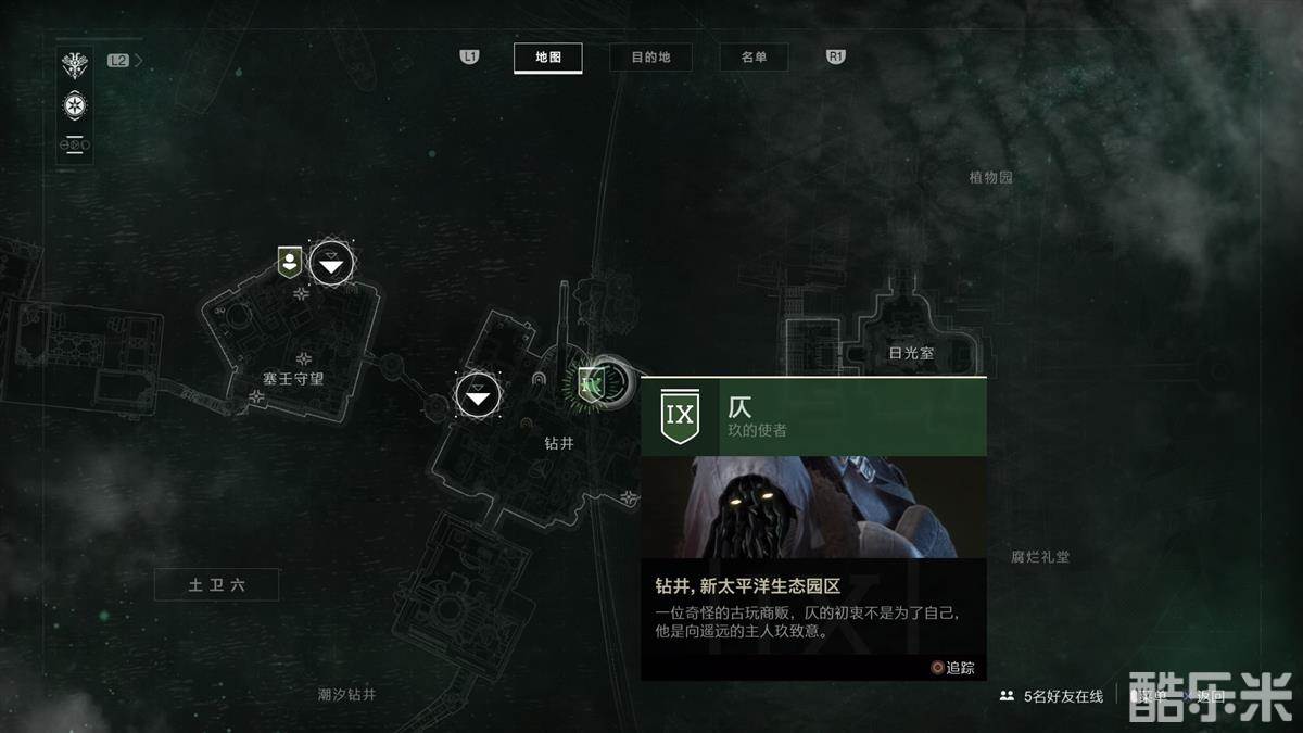 《命运2》9月22日的“玖”的使者——神秘商人“仄”已经更新,出现地点是土卫六的钻井附近,位置如图: