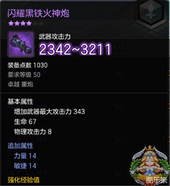 接下来呢,强化和换更高级的装备成了你追求的主流。一般每天12连加每日和日常,脸不要太黑每天赚个一两百万没什么问题(算上混沌玛瑙结晶)这里我按照人品一般的玩家计算。最佳的强化方式(当然也看脸)就是去找王城企鹅吧旁边的幸运商人,强化券和八毛钱一个的混沌玛瑙结晶简直是你最划算的选择。那么问题来了,我有了强化券强化什么呢?岛2里能强化的只有衣服裤子(连身衣)和你最重视的武器。一般输出职业都优先强化武器,而牧师生存优先建议可以先强化衣服。那么什么武器值得强化?很遗憾茫茫攻略里我从来都没看到一篇讲除了专属以外紫武的区别,当时我看着手里加10的闪耀一阶武器还不如别人加9的三阶紫武,下面图为大家讲解一下各武器的说明图。