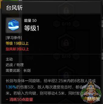 台风斩流派中,台风斩耗蓝较高,容易出现真空期。该技能可以用来补输出,在技能点富裕的条件下,可以往上点。