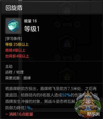 评价:在有多余技能点的情况下,请将其点满。该技能不消耗能量,并且可以位移,当盾牌突击不够用的时候,可以用穿透之剑进行位移。