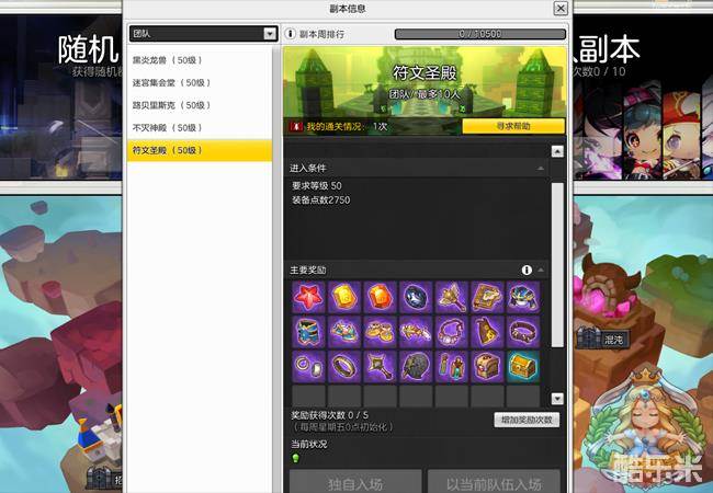在游戏中按“V”键,或通过右下角“冒险-寻找副本”打开副本界面,选择团队本找到符文圣殿副本
