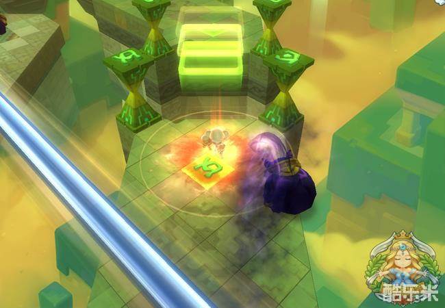 2,在第一次进行平台移动时,要考虑到第二平台上有DEBUFF怪的存在,因此左右两边的玩家最好等中路将激光图腾清除后再进行移动,并优先清理施放DEBUFF技能的紫色怪物。