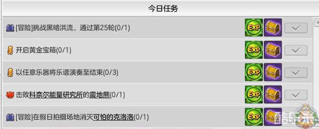 在冒险岛2生活类目里面,每天都会有五个任务,完成以后会有大量的经验