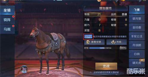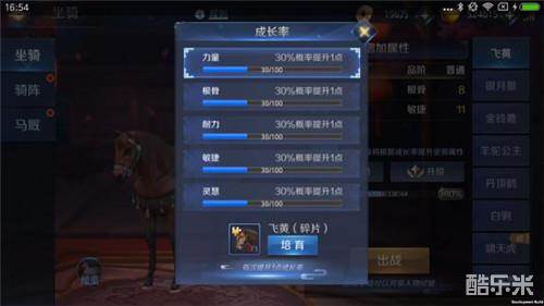 3.坐骑的五维属性可以通过骑阵的转化系数,转化为角色属性。
