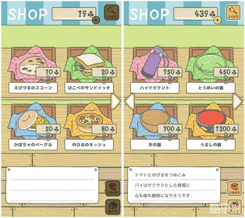 玩家在这个游戏里大多数时间处于“无所事事”状态,我们每隔一段时间开游戏看看,屋外的幸运草长满了就去拔一拔,收获的幸运草可以拿来购买各种便当、碗具、水壶、灯笼等道具,这些都是可以给小青蛙出门带着的。小青蛙的包袱里一般放便当、护身符、道具。便当就不用说了,路上的口粮,护身符是保佑出行平安的,道具可以是水壶、碗器、灯笼等等实用的东西,这些东西越好,小青蛙就可以走得越远,看到更多的风景。