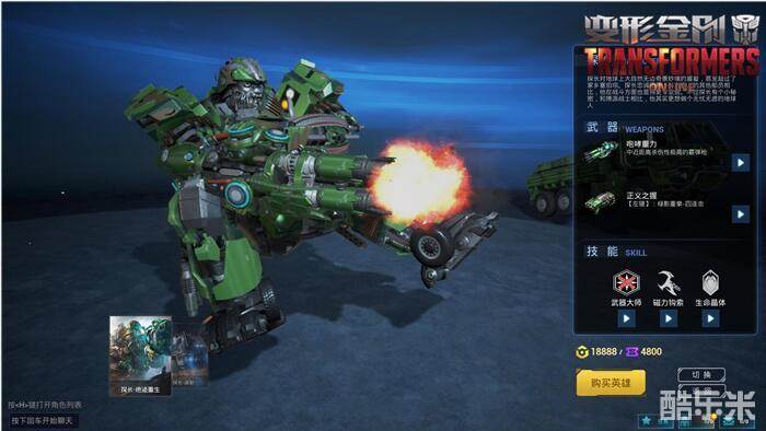 擎天柱的近身攻击是所有英雄中最强大的,且可以展开盾墙抵挡正面攻击,让队友跟随他逐步推进。其远程武器星海狂鲨是1把拥有极快射速、超多子弹、操控性能良好的机枪,能对敌人造成高强度的压制效果,是队伍迈向胜利最强力的后盾。