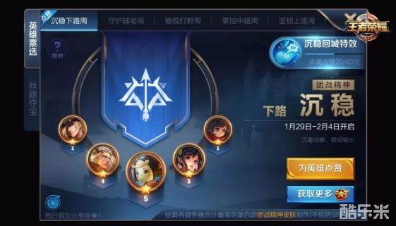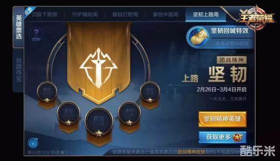 1月29日至3月4日期间,每周开放一路精神和归属这项精神的英雄,通过日常活动可以获得“团战精神之星”道具,来为心仪的英雄点赞,每次点赞消耗1枚“团战精神之星”!