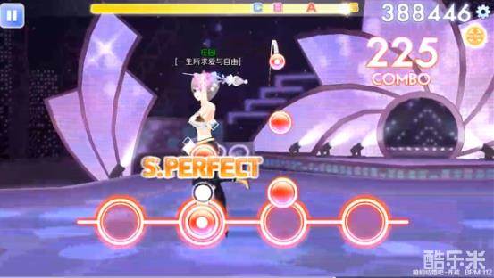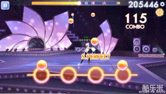 咱们结婚吧的长按音符中间还会有快速的单个音符,这里要注意其中穿插的双按音符,这里出现MISS非常亏,在按键的时候保证准确度即可。这里的小技巧就是跟随音乐的节奏点敲击,这样还可以最大程度保持S.Perfect音符的数量。