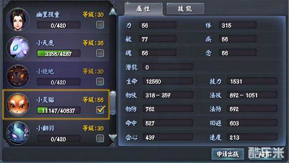 一开始灵猫我是加魂的,辅助少量点加敏保证速度,但是伤害不够可观。对战方等级比己方高的时候,灵猫可能会在速度不够的情况下被秒,导致己方失去控制很难有赢面。而灵猫的技能伤害不高,为了保证生存,我把灵猫洗为了体敏属性。
