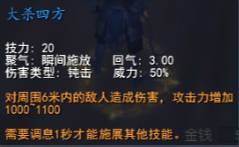 技能三:大杀四方。自身范围群攻,有时候可以用来补刀