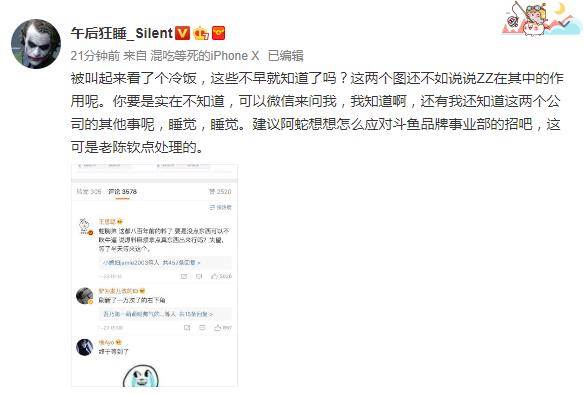 被叫起来看了个冷饭,这些不早就知道了吗?这两个图还不如说说ZZ在其中的作用呢。你要是实在不知道,可以微信来问我,我知道啊,还有我还知道这两个公司的其他事呢,睡觉,睡觉。建议阿蛇想想怎么应对斗鱼品牌事业部的招吧,这可是老陈钦点处理的。