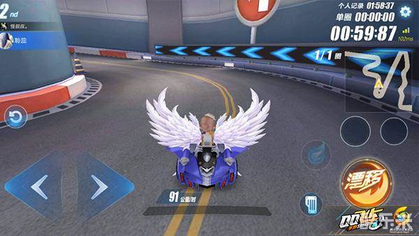 过弯时因赛道中央靠近内壁方向行驶,在接近弯道入口前2秒时就应该开始漂移,这里的漂移要一气呵成,不可以断续,漂移健和方向键一起按下,持续大概12秒,等待车身旋转180度过到弯道另一边,使用小喷取消车身惯性,在小喷快要消失时就应该立刻漂移过下一个弯道,再使用氮气卡加速取消车尾摆动,完成漂移过弯。