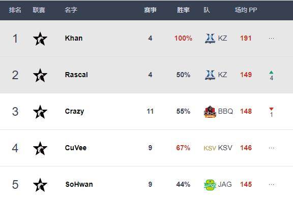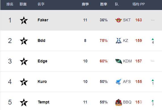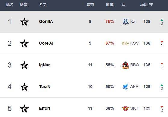 BEST GG网站发布新一期LCK选手评分,让我们看看哪些选手进入前五吧。