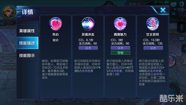 妲己是一个拿人头的英雄,前期杀残血,后期秒脆皮,用好她便能轻轻松松上分。