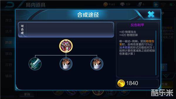 六神装推荐:影忍之足、暗影战斧、宗师之力、反伤刺甲、魔女斗篷、破军