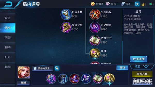 顺风局我方有较大优势,所以主要的金币应该花在购买增加法术强度和法术穿透的装备上,但是由于妲己血量太低,护甲太少,即便是被敌方范围技能擦碰到也会造成很大的损伤,所以我们需要给妲己堆加一些血量和吸血效果。这套装配配齐以后一套基本可以秒杀敌方“脆皮”和残血的英雄。