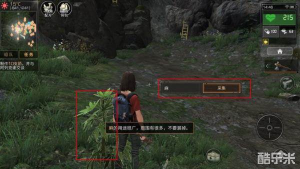 野外生存,野果或者一些植物资源是必不可少的。那么我们如何采集他们呢?首先我们在野外能看到一些可供采集的如:麻、野果等资源,靠近这些资源,我们可以看到采集的对话框。然后我们可以点采集来进行采集。