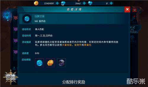 在囚禁之岛玩法中,每位玩家单人匹配进入,副本内将有成百上千玩家同时涌入,进入后有短暂的候场时间,系统将进行随机分配,玩家进入不同的战场。战斗结束后,不论输赢参与双方都会获得奖励,除了获得团队奖励外,还对游戏本场参与玩家进行排名,分配排行奖励,双重奖励,助力玩家提升。