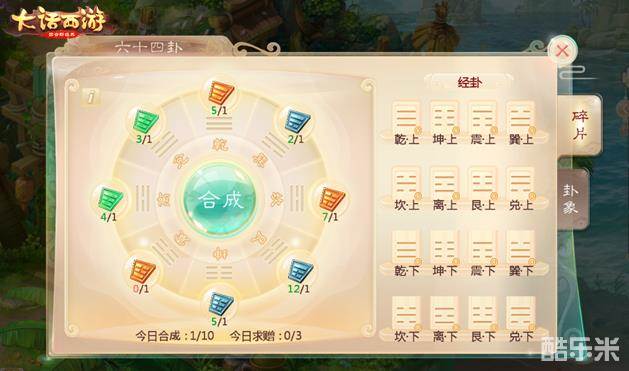 当玩家收集到天机碎片后,还能把碎片合成为天机卦象。天机卦象总共有64种,每个卦象需要由8个天机碎片合成。当玩家集齐64卦所有卦象后,将触发隐藏任务,并有丰厚奖励等你来领!