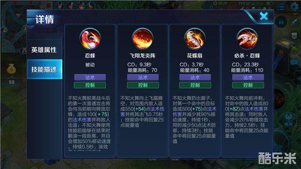 不知火舞是Poke能力很强的一位中单法师,二技能的冷却时间极其短,可以不断风筝敌人,并且会减少敌方移动速度,使敌人几乎很难追上不知火舞。