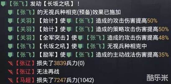 但是战法释放需要两回合的准备时间,在这过程中容易被混乱、犹豫等效果打断,所以需要学习【谋定后动】来免疫控制,保证【长坂之吼】准备之后能打出伤害。而后需要的就是在准备回合期间,把各种提升伤害的效果施加给张飞,完成一击上万的输出效果。