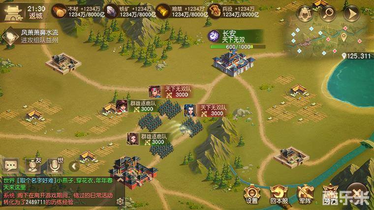 在出发地城内的所有成员则可以派出一支自己的部队,主动请缨,在一定时间内响应号召或参与集结的成员均会同时出征,进军敌城。而其余成员在本次攻城结束之前也可以派兵参与战斗,后续支援。而作为守城方,也要集结城内成员,出城迎敌。