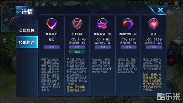 被动技能——比翼同心:被动技能让干将莫邪的飞剑技能拥有更大的作用范围,并使干将莫邪的普攻能打出更多的伤害,总体提高了干将莫邪的输出能力。