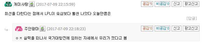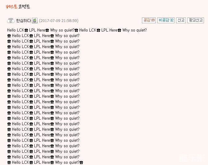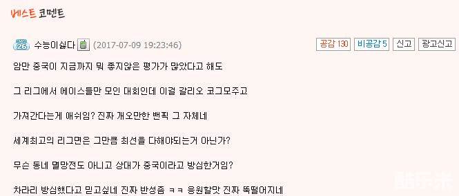 LPL以3:1的比分战胜强敌LCK,获得“亚洲最强战区”称号。这个结果让韩国观众大失所望,他们在Inven论坛发表了自己的看法。(顺序是从第一局到第四局的热评)