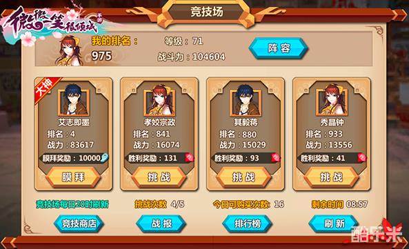 《微微一笑很倾城》教你玩转竞技场:详解竞技场