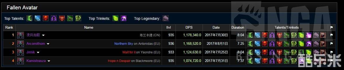 到目标为止,WCL也只有4个样本,其实并不是DH不能打,而是DZ ZS真的太优势,其实DH在这个BOSS还是可以一战的。